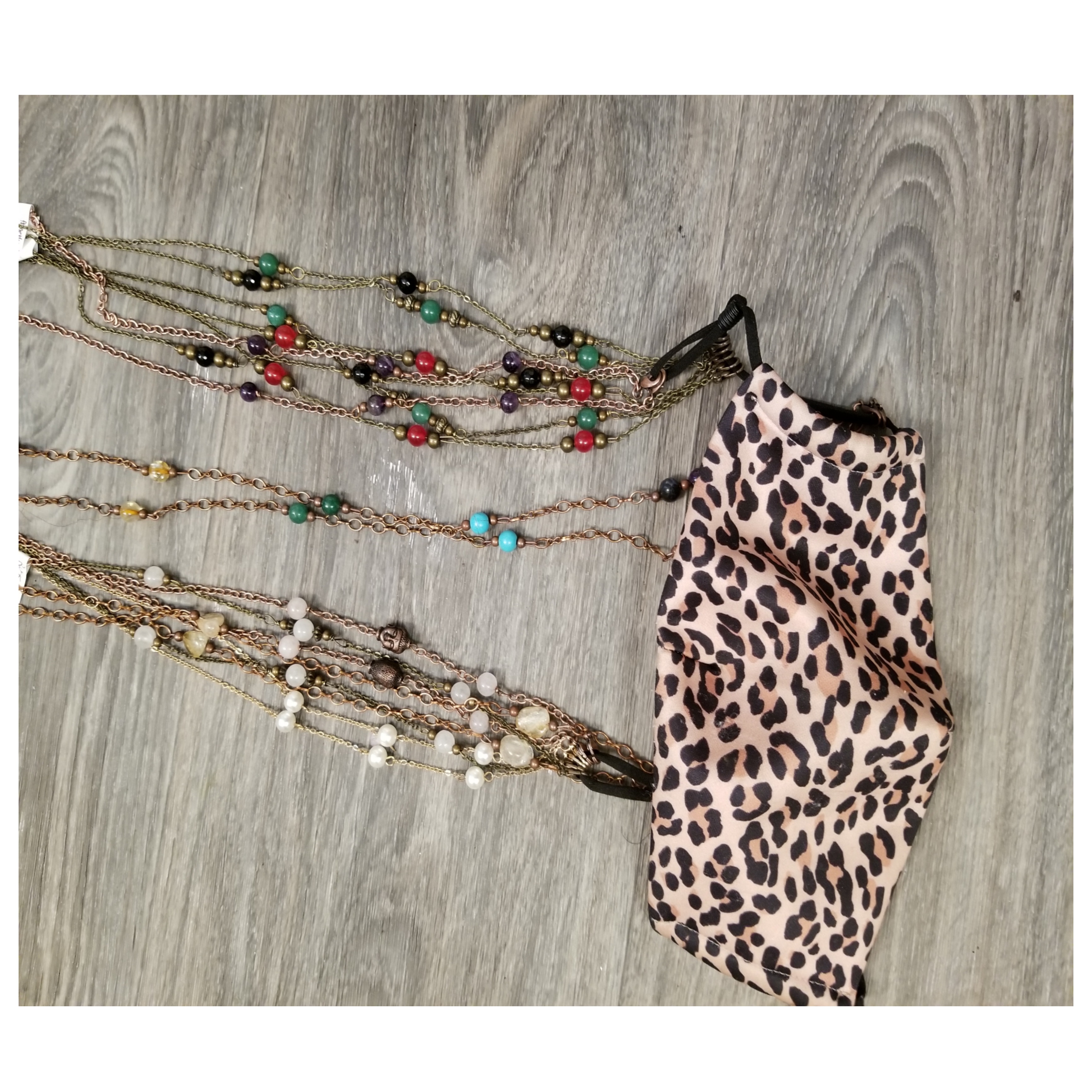 Look fashionable wear your crystal mask landyard. Designed to hold your mask in place around your neck so you don't lose it.