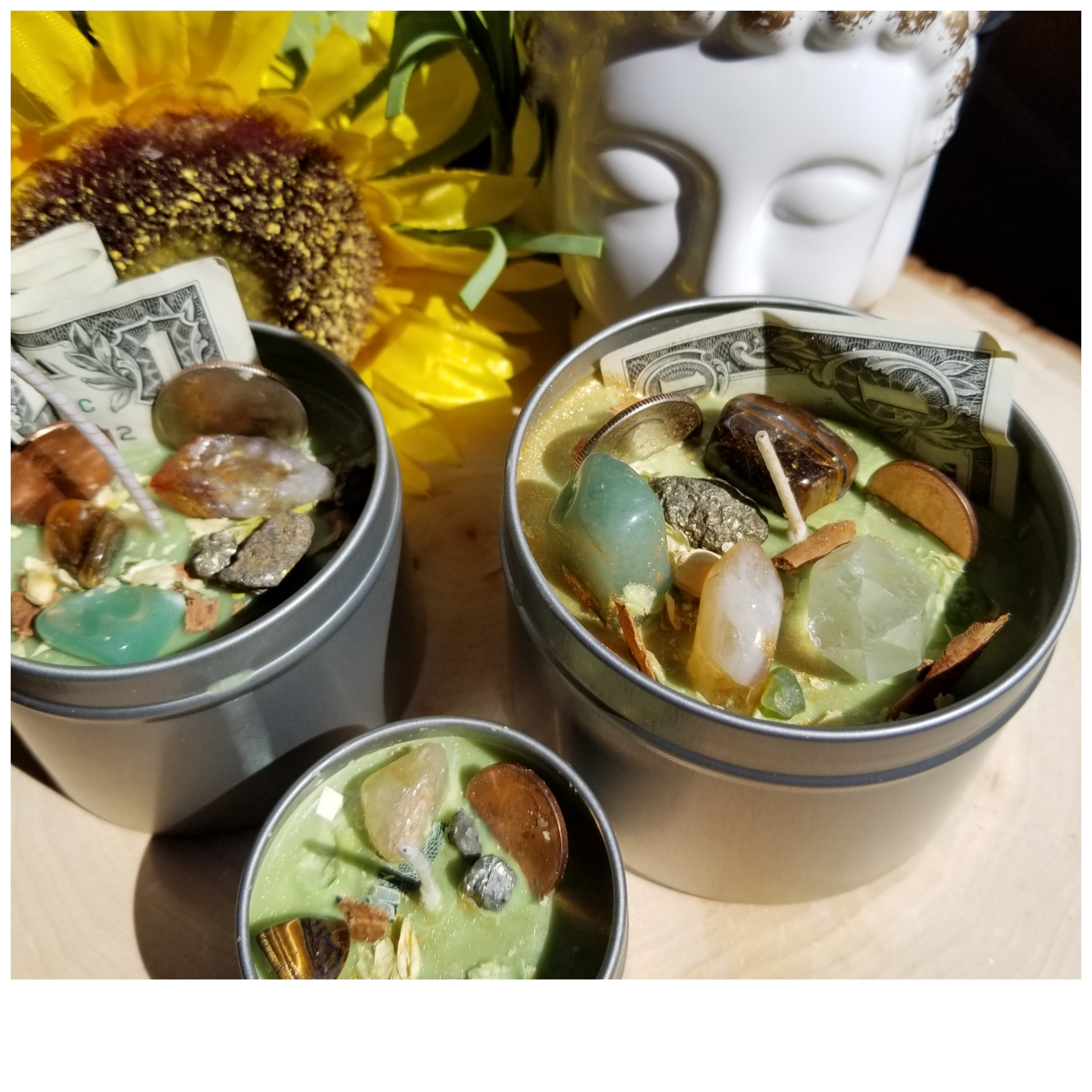 Your Get Money Candle is burned to bring you prosperity. Each Crystal will connect your energy to the earth. Everything works together with your personal energy, to heal and expand the positive energy around you.