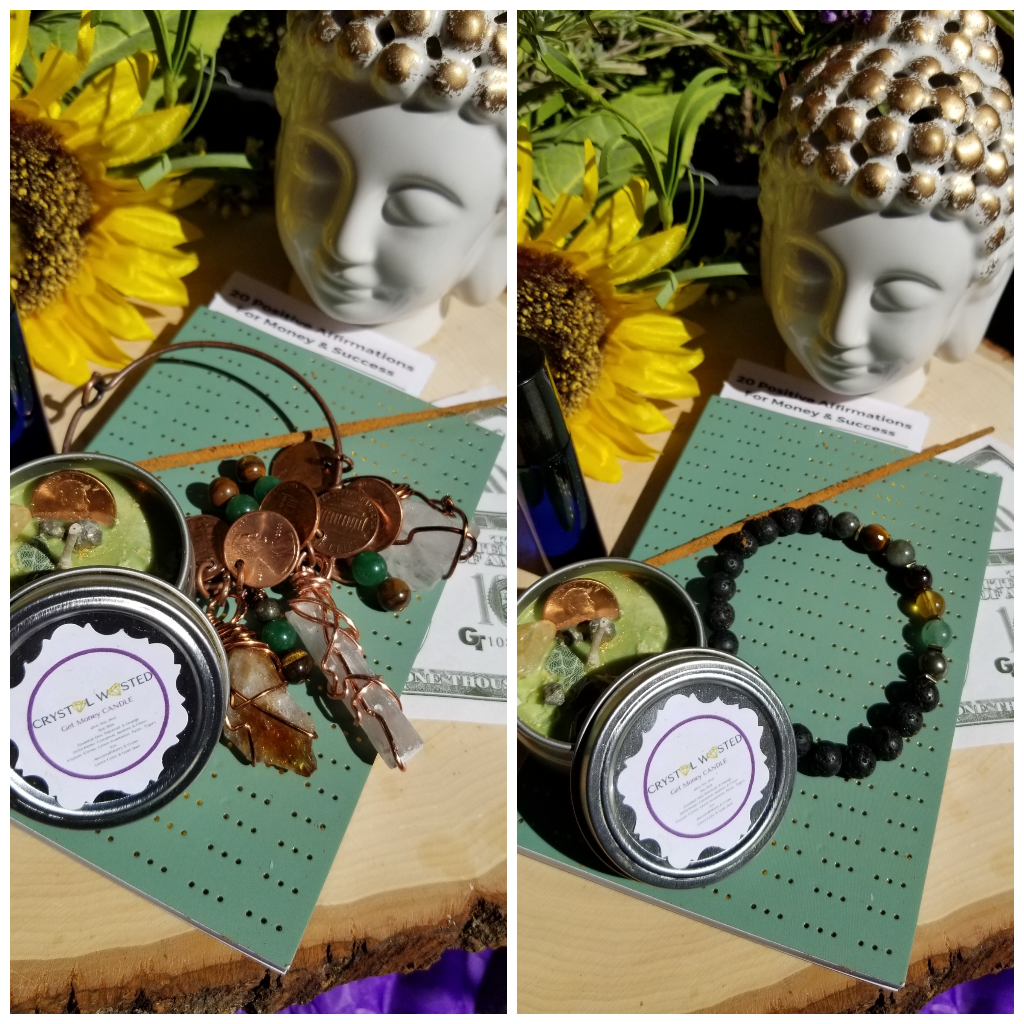 Your Get Money Candle is burned to bring you prosperity. Each Crystal will connect your energy to the earth. Everything works together with your personal energy, to heal and expand the positive energy around you.