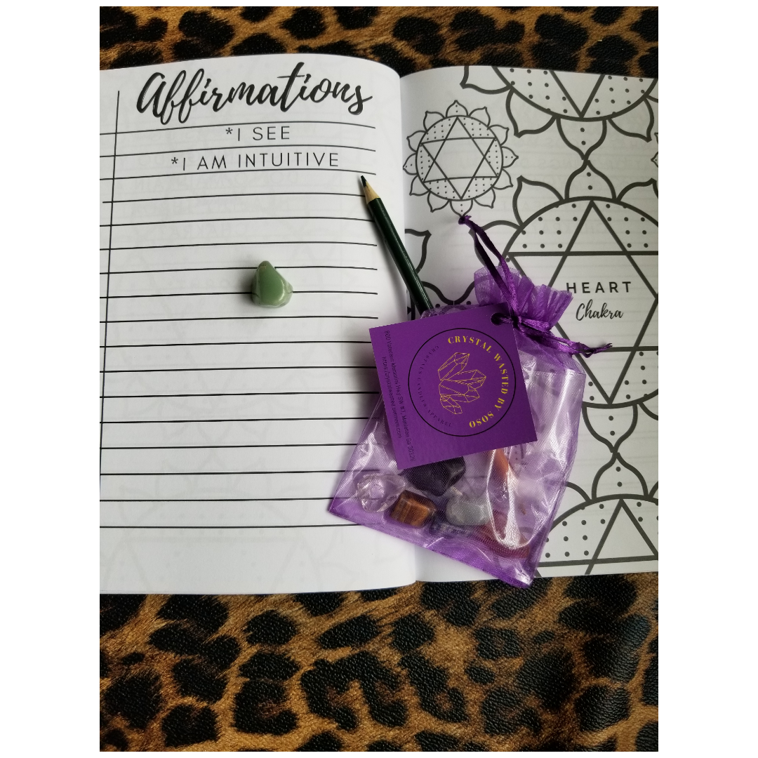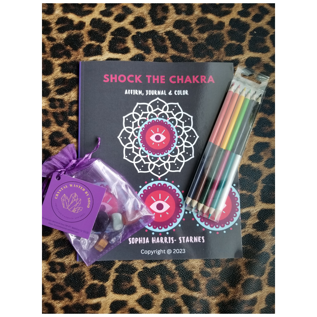 Shock the Chakra Bundle comes with Coloring Pencils and Crystals for the 7 Chakras based on availability: