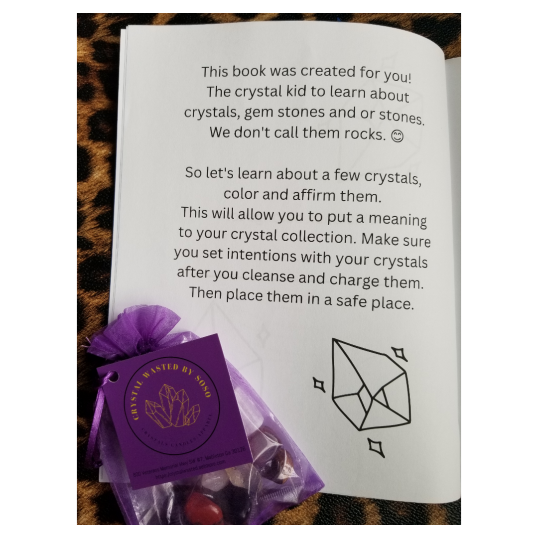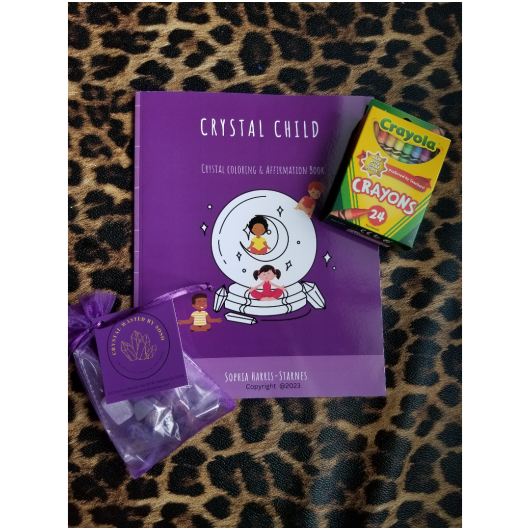 Note on Comes with Bundle Pack: Crayons & Crystals for Crystal Kids (Selenite, Clear Quartz, Green Aventurine, Rose Quartz, Clear Quartz, Lapis Lazuli, Black Obsidian, Amethyst, Tiger's Eye, Carnelian, Citrine and Red Jasper)